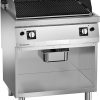Electric grill with structure made of AISI 304 stainless steel, 20/10 mm thickness top. Cooking griddle made of enamelled cast iron with special nanotechnology surface treatment, equipped with stainless steel splash guards and cleaning brush. Heating by tilting electric heating group. Lower well, water filling through tap with adjustment knob, capacity 10 lt (overflow). Pre-setting for remote control of power peaks.