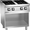 Electric boiling range with AISI 304 stainless steel structure, 20/10 mm thickness top. Watertight fully sealed cast iron plates, fitted with thermal protection devices. Each plate is controlled by a 5-position switch. Pre-setting for remote control of power peaks.
