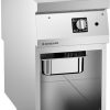Griddle made of AISI 304 stainless steel, 20/10 mm thickness top. Cooking plate made in Fe510D steel with hard chromium surface treatment. COOKING-PRO SYSTEM. Delivered with: plate plug. Heating by heating elements made in AISI 309 stainless steel, safety thermostat. Working temperature (min-max): 70-260°C. Integrated lower open compartment. Pre-setting for remote control of power peaks.