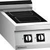 Electric range with pyroceram surface with AISI 304 stainless steel structure, 30/10 mm thickness top. Cooking surface in pyroceram, flush with worktop and sealed. Heating by infrared electric elements. 2 cooking independent areas controlled by energy regulator. Pre-setting for remote control of power peaks.