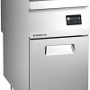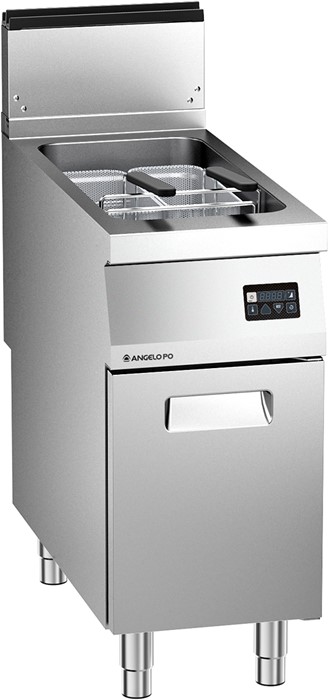 Fryer made of AISI 304 stainless steel, 30/10 mm thickness top. Pressed well, sealed into top, generously coved with large drain zone; each well delivered with 2 baskets and 1 lid. Digital controls. Electronic circuit board for control and display temperature 0-190°C, melting and 100°C hold function programming, sound alarm. Heat exchange pipes inside the well. Electronic spark ignition, control pilot flame by IONIZATION, safety thermostat.