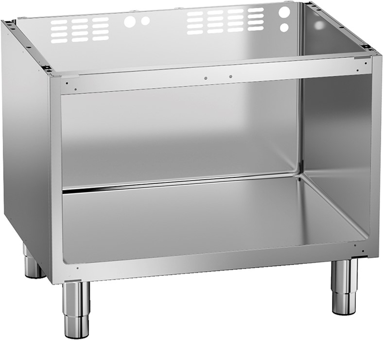 Neutral undercompartment with free-standing structure, base made in AISI 304 stainless steel. H2 hygienic radius in the lower area inside the compartment, between the bottom and the two sides panels and the backpanel, as required by the DIN 18865-9 standard. Height adjustable floor-mounted feet in AISI 304 stainless steel, non-scratch sole in insulating plastic material. Feet are supplied at a fixed height of 15 cm. Foot extension 5 cm (minimum height / maximum height: 87.5 / 92.5 cm top element height included).