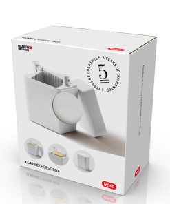Den smarte Rosti Classic osteboks har integreret osteskærer, som giver dig både hygiejnisk opbevaring og nem anvendelse, uden at du behøver røre ved osten. Hver gang du skærer en skive, trækkes bunden opad, så osten altid er klar til den næste osteelskende bruger. Dette innovative design sikrer, at osten forbliver frisk og klar til servering.