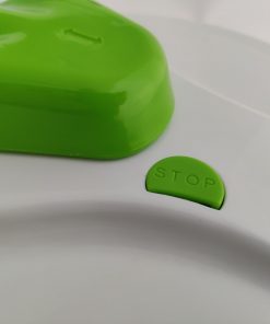 Den har en pumpe-mekanisme, som gør det meget nemt at slynge salaten, kun ved hjælp af at skubbe til håndtaget.